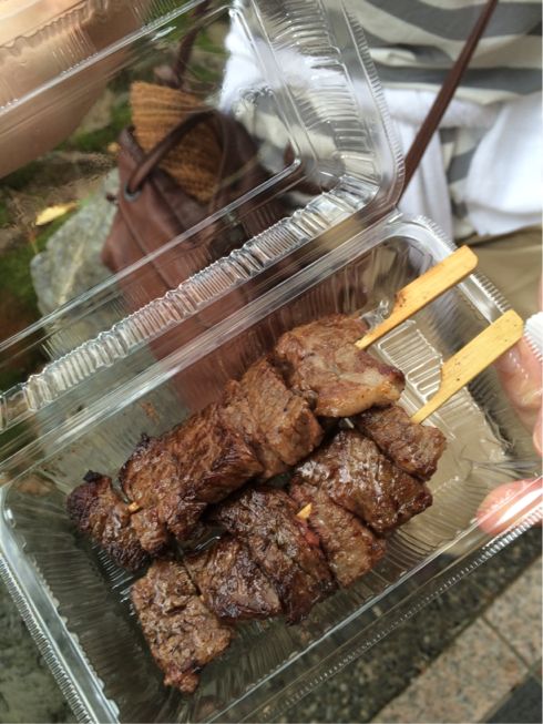 能登牛の串焼き一本300円なり。美味しくて満足したので予定していた焼き鳥の秋吉は取り止めw