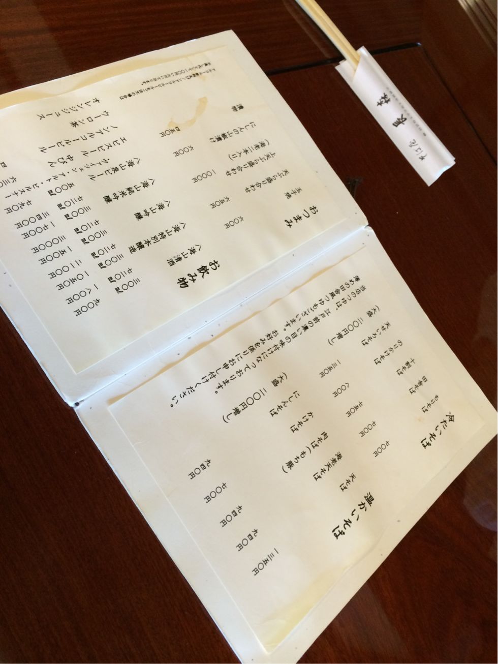以外と待たずに通されて、メニュー見ながらアレコレと。