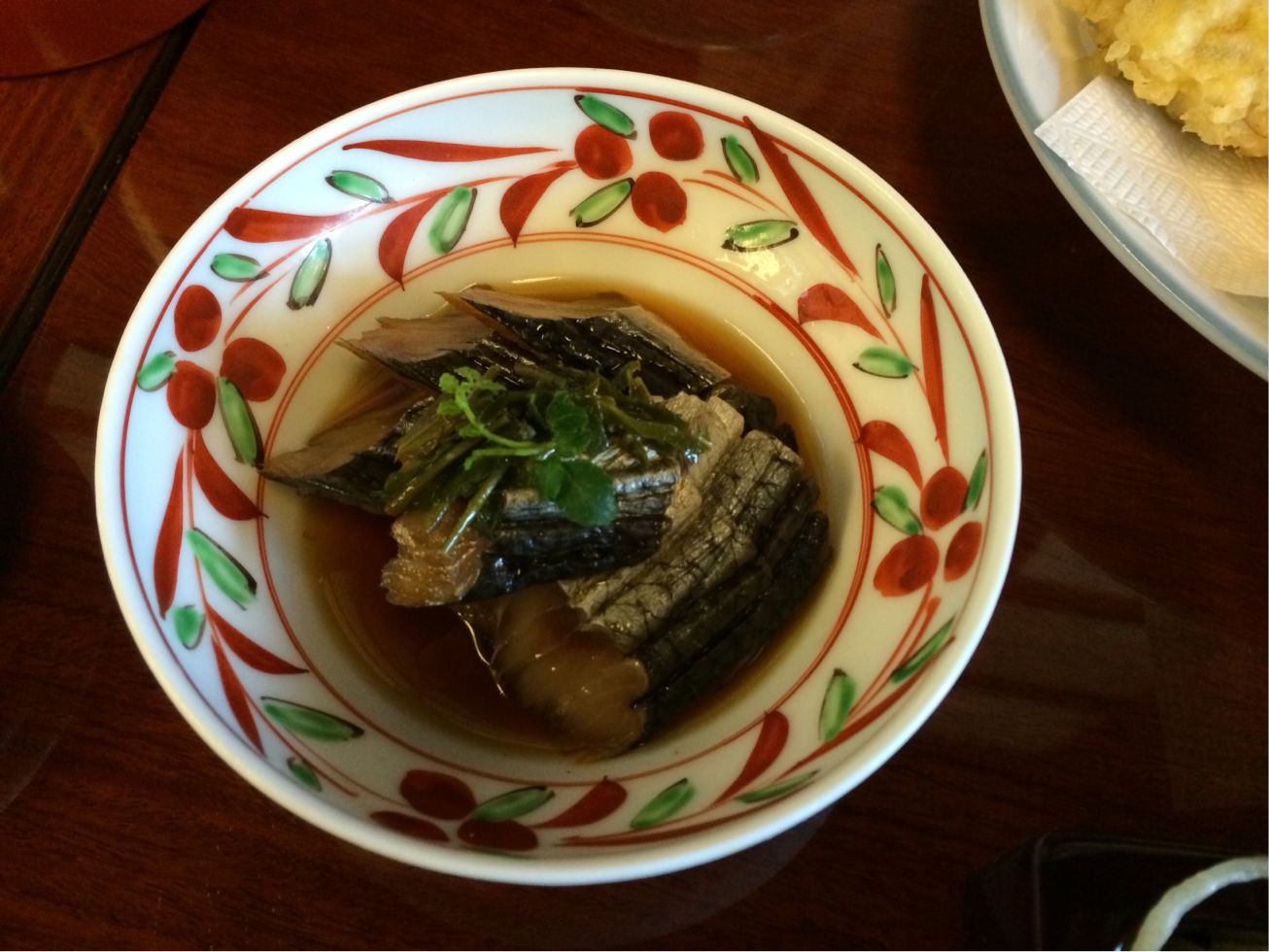 蕎麦は普通の蕎麦と布海苔蕎麦。つゆも二種類から選べます。つゆは二つとも頼むことができます。片方は江戸前と書いてあるんですが、となりの小学生が「江戸時代のそばなの」と言っているのを耳に挟みほほえましく思っていると、お父さんが「そうなんだねぇ」とか言っているんで「オイオイ」と心の中でツッコミ入れる。