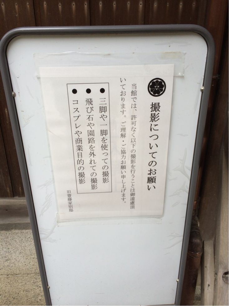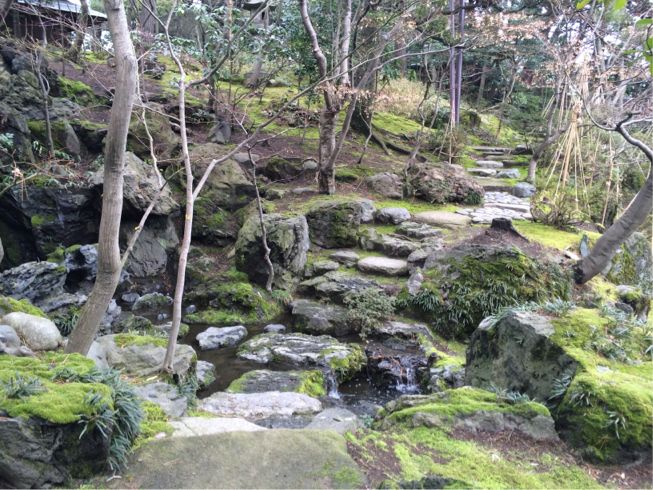 でガイドの方に連れられて見て回ります。家の由来とか建物や庭の話とか。特に庭は東京の有名な職人さんが作ったそうで、その方の庭ってのは今ほとんど残っていないらしいです。