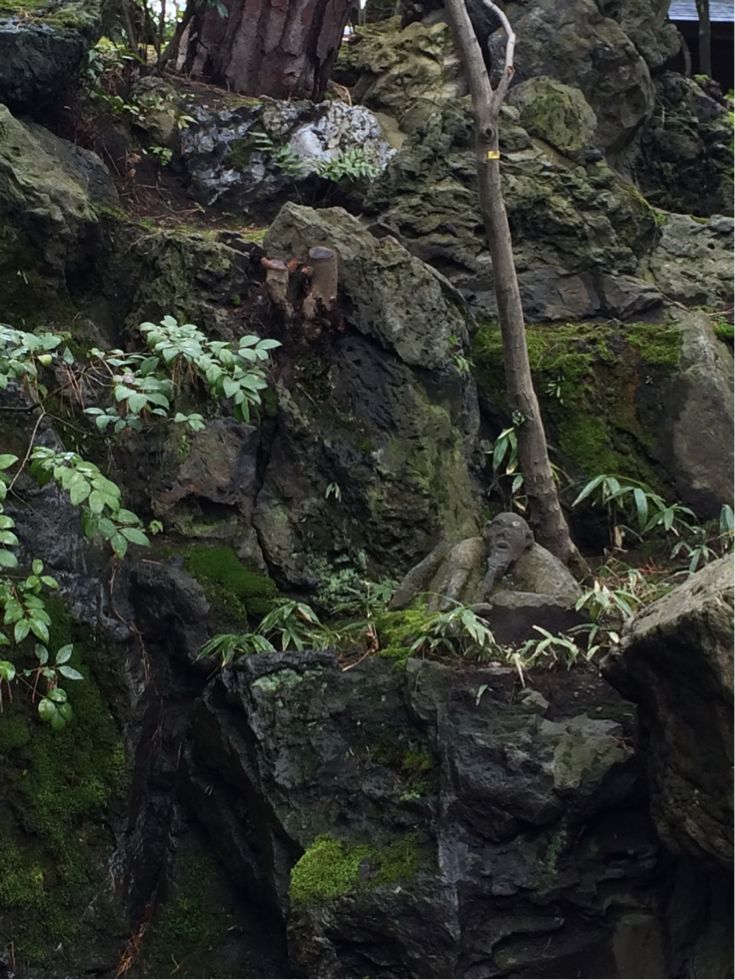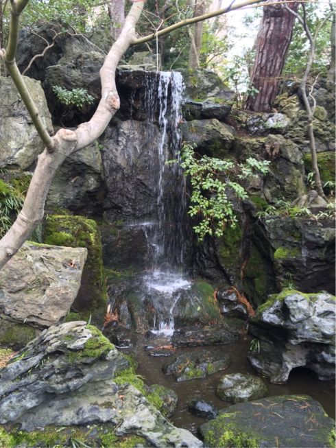 夏になると木が茂り池の向こうが見えなくなり、滝の音だけが聞こえると言う。それによって涼を感じると言うしかけらしいです。